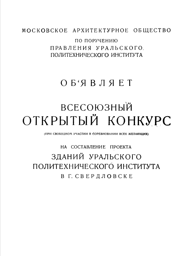 Программа открытого всесоюзного конкурса на составление проекта зданий Уральского политехнического института в г. Свердловске (1928)