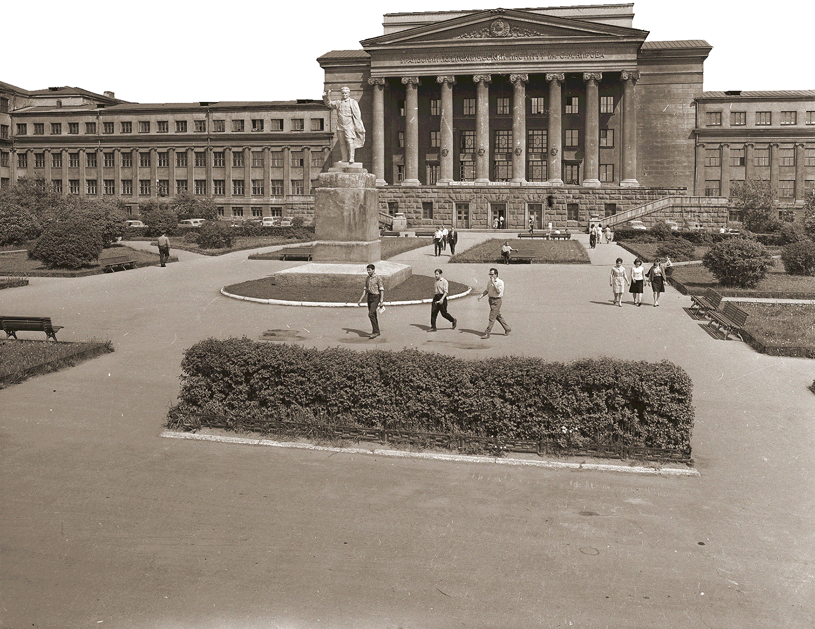 Исторический памятник С. М. Кирову перед главным учебным корпусом. 1949 г. Государственный архив Свердловской области