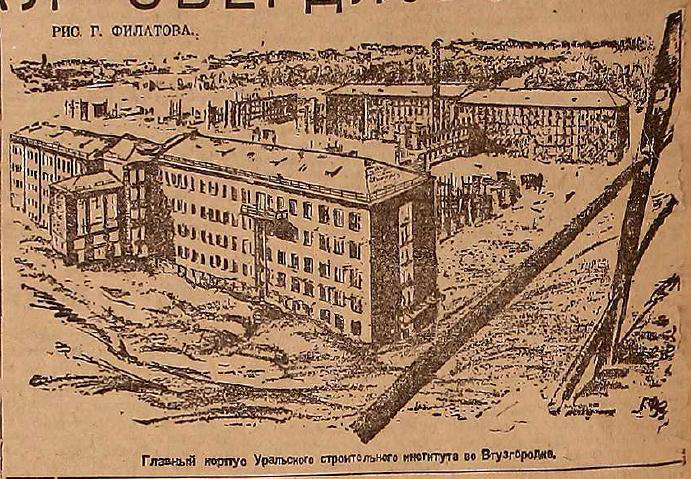 Главный учебный корпус институтского городка к моменту постройки был крупнейшим общественным зданием Урала. Строительство и отделочные работы в нем завершились в 1939 году. Величественное сооружение, ставшее одним из главных символов города, производило неизгладимое впечатление на его гостей. Поэтесса Мариэтта Шагинян, находившаяся в Свердловске в годы Великой Отечественной войны, писала о здании так: